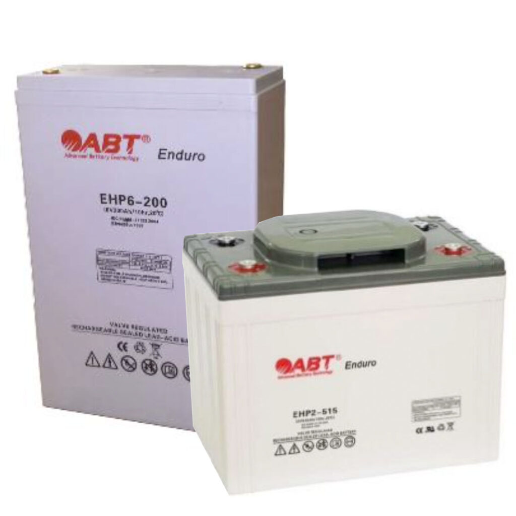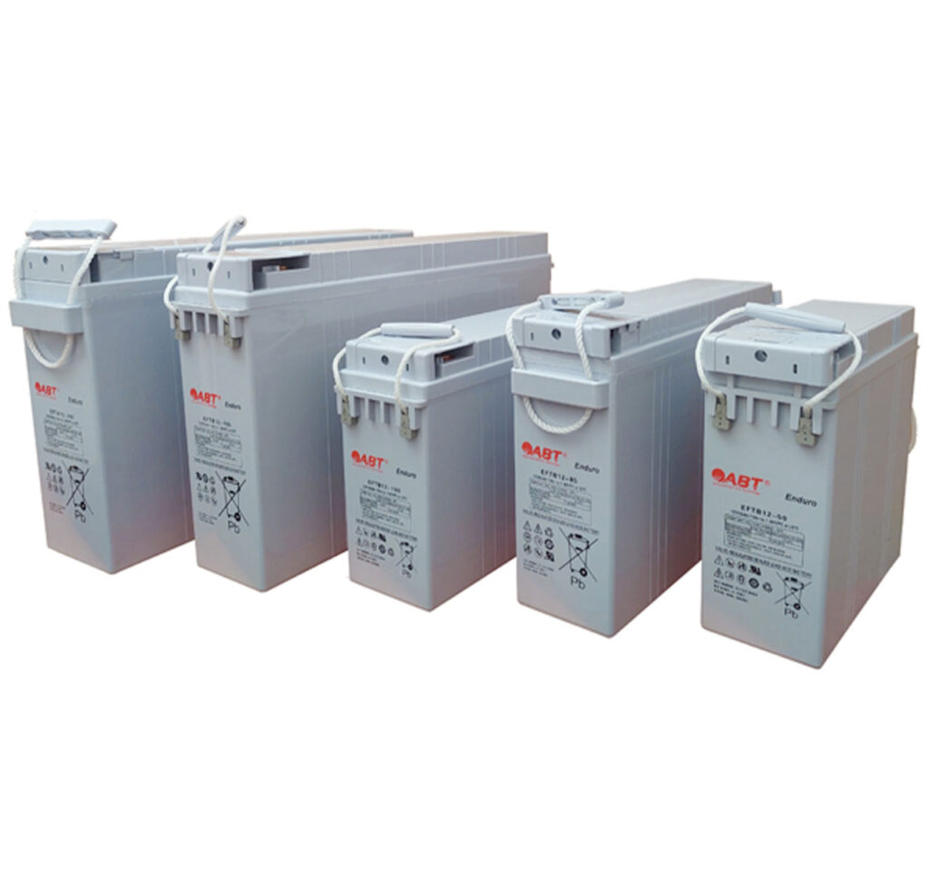 Akumulatory VRLA wykonane w technologii AGM typu „Front Terminal” z dodatnią płytą pastowaną występujące w monoblokach 12V.